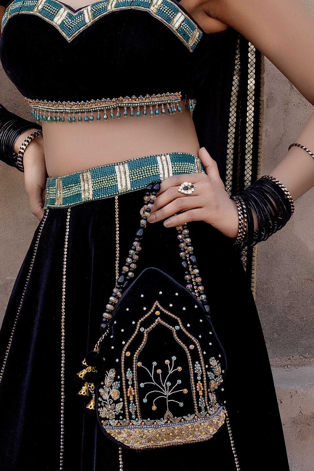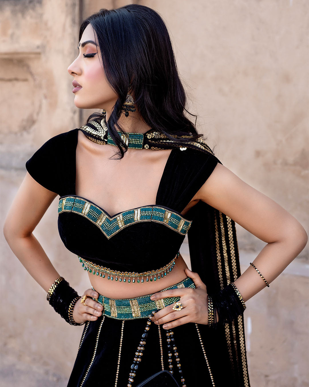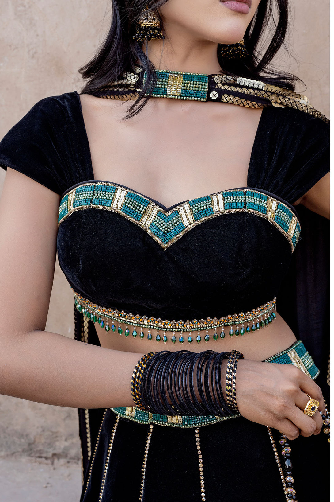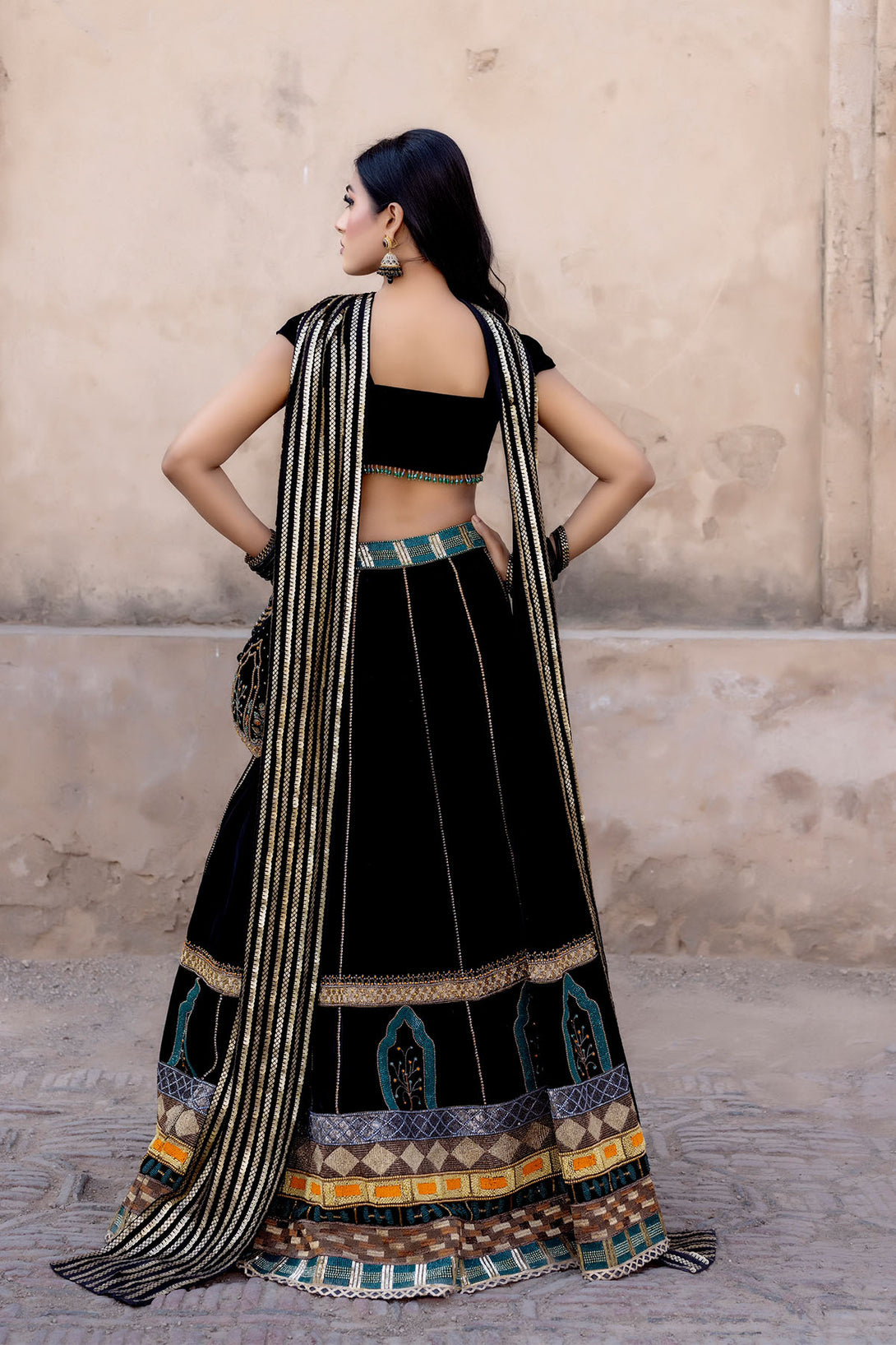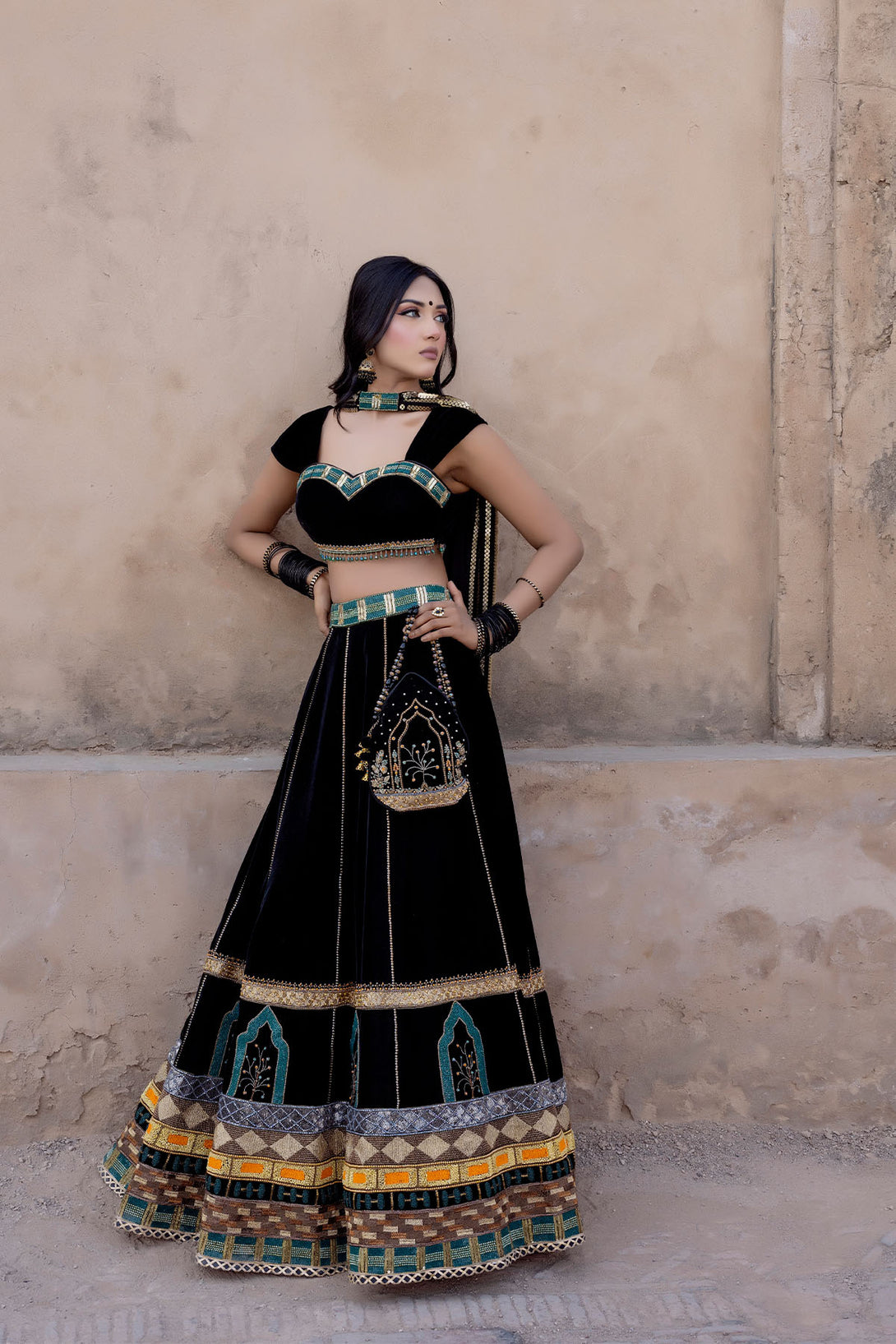 Celebrate timeless elegance with this exquisite velvet lehenga set, lovingly handcrafted to honor heritage and style: