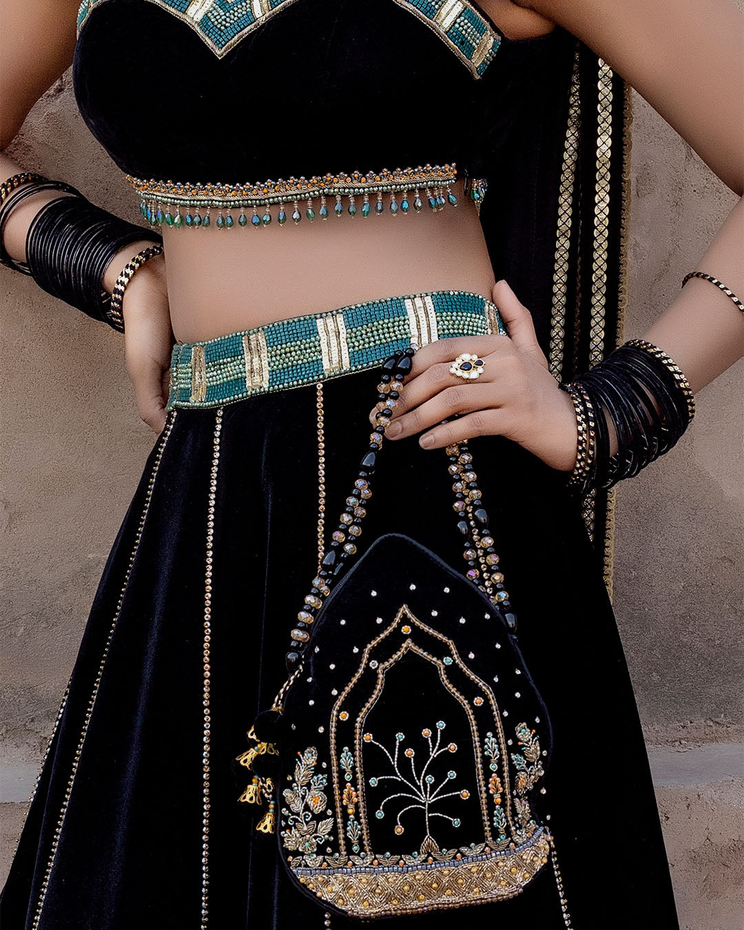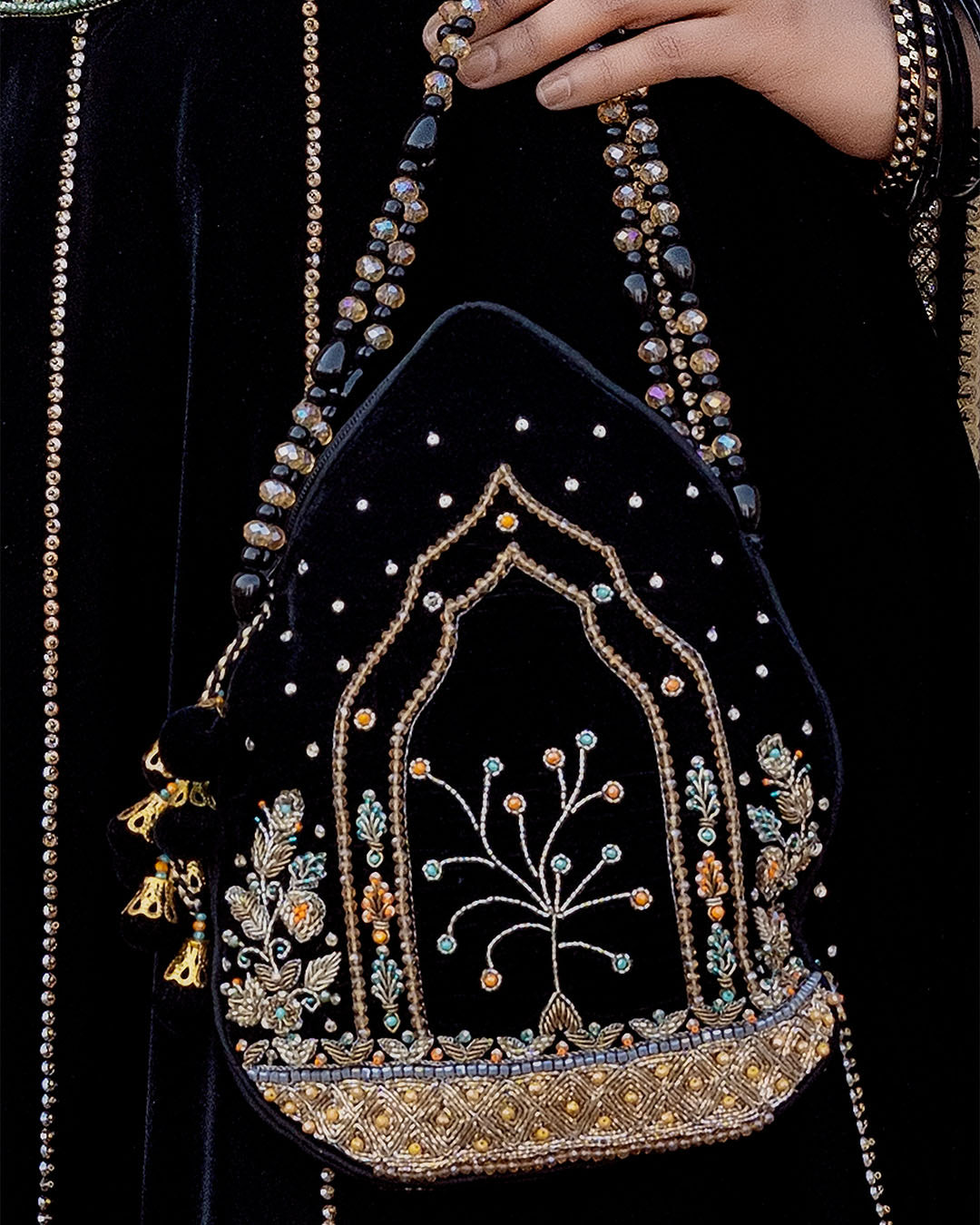 Delicately hand-embellished and stitched with care, it's perfect for carrying your essentials while completing your traditional look.