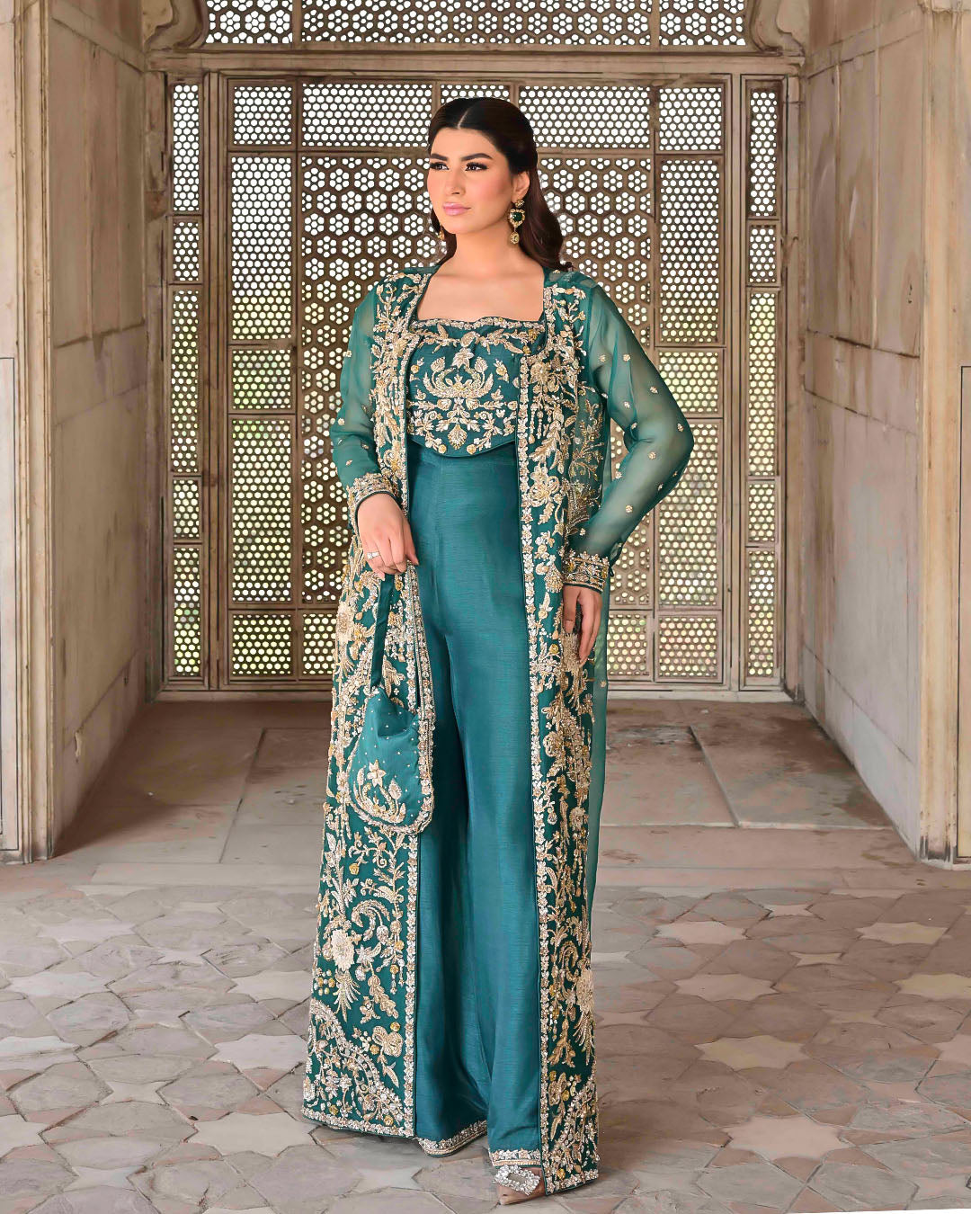 Elevate your look with the Elisa Pouch, designed to mirror the elegance of the long organza jacket.