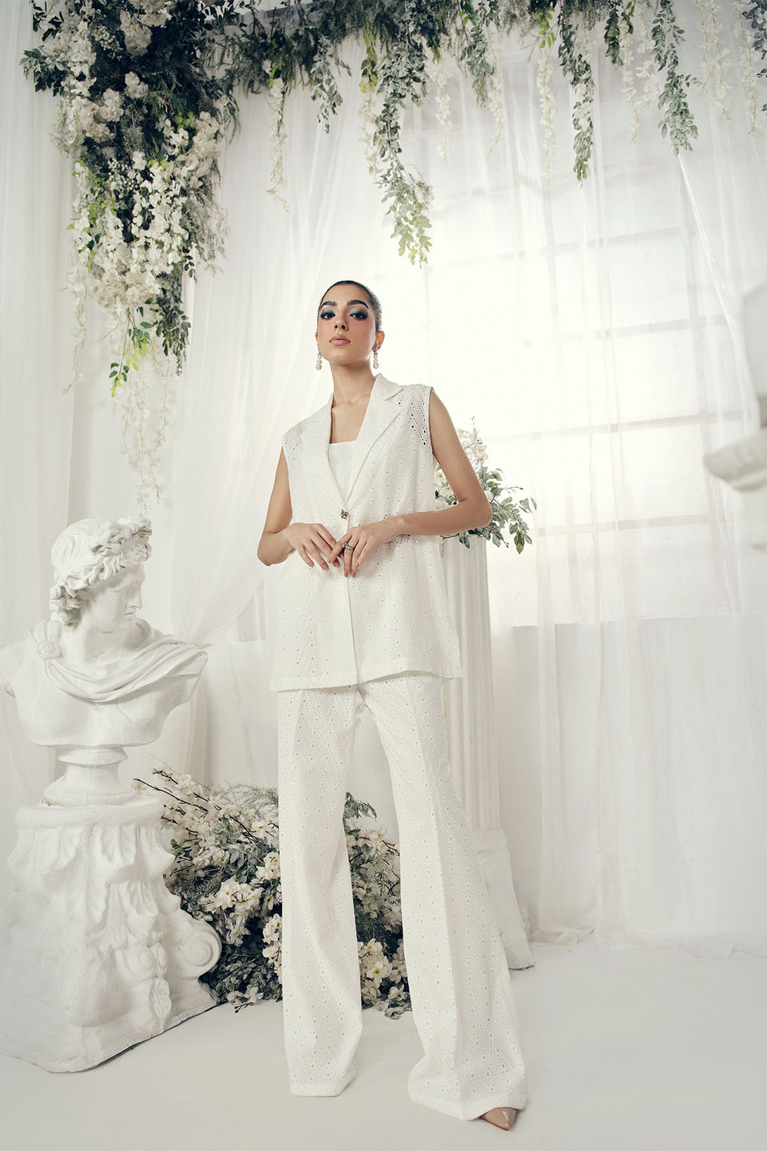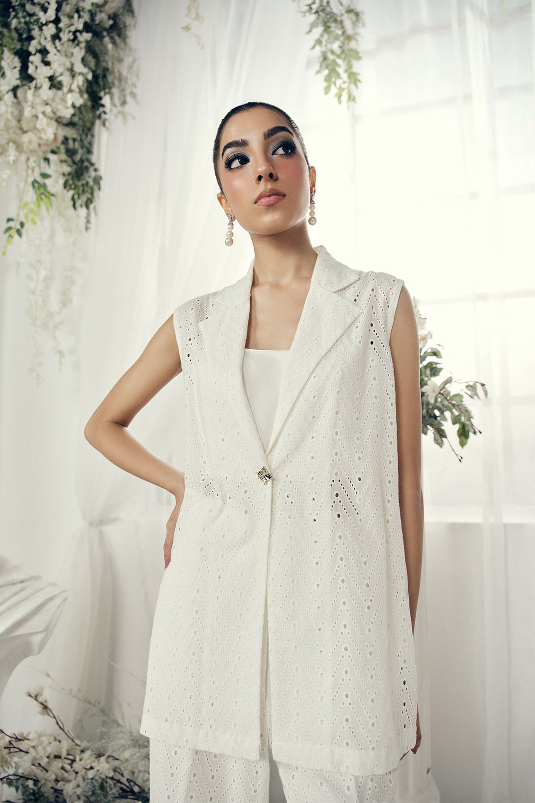 A sleeveless blazer-style top for a sharp, structured look