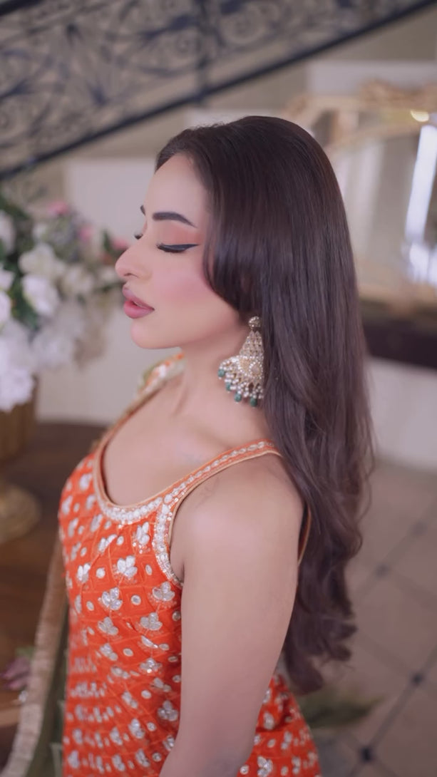 Maya – Vibrant Chikankari Orange Shirt & Shahrara Set