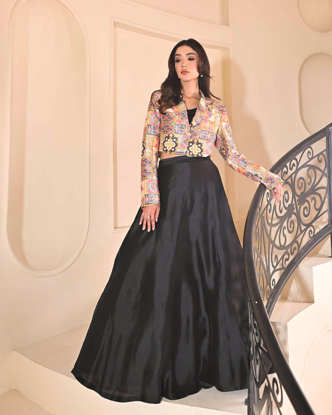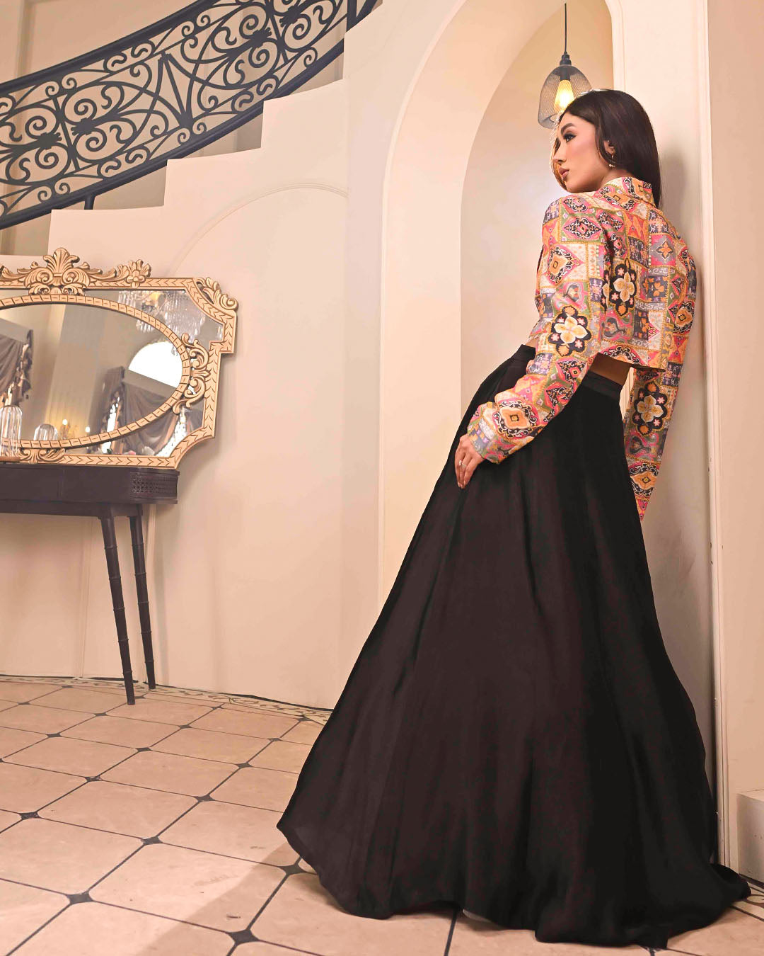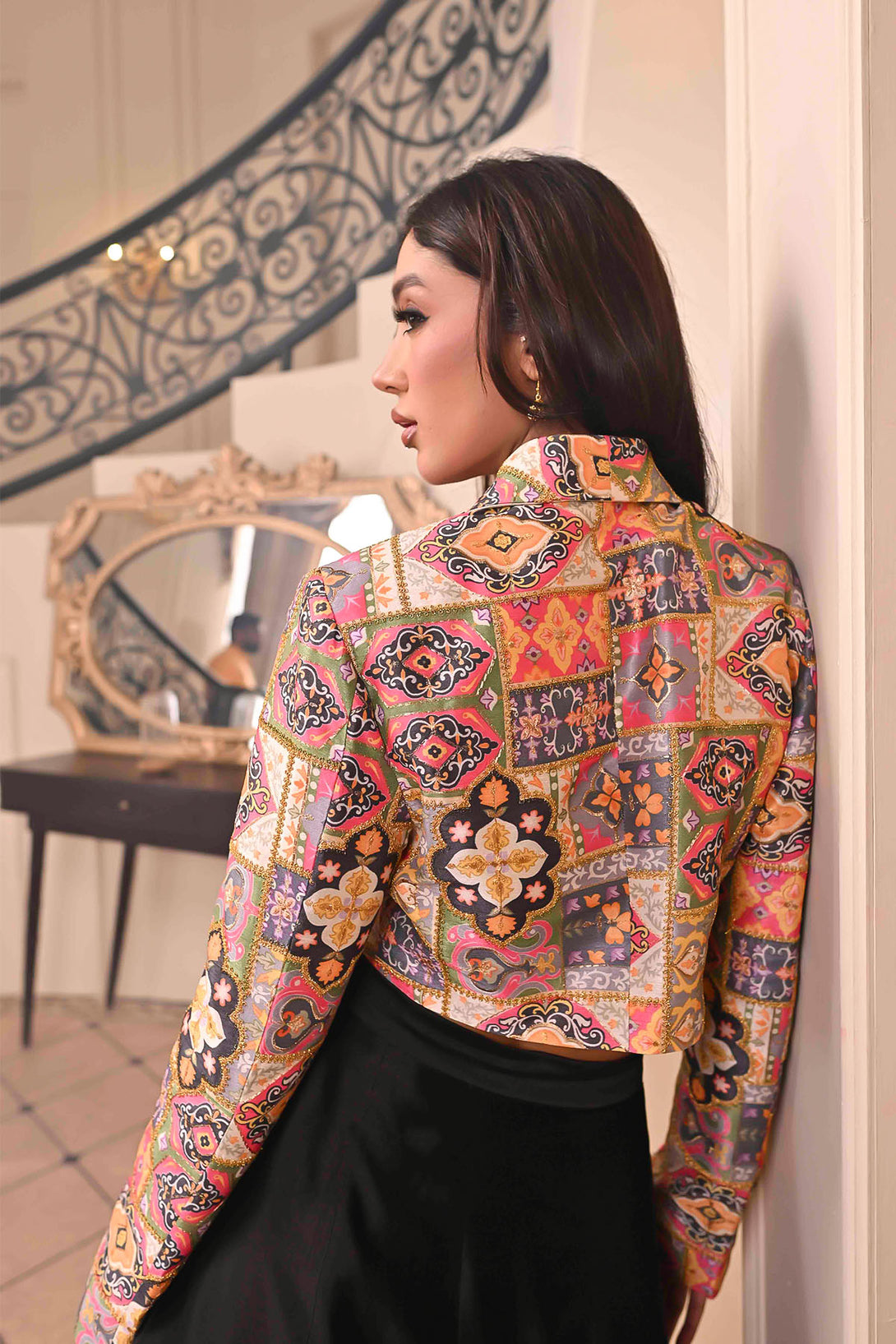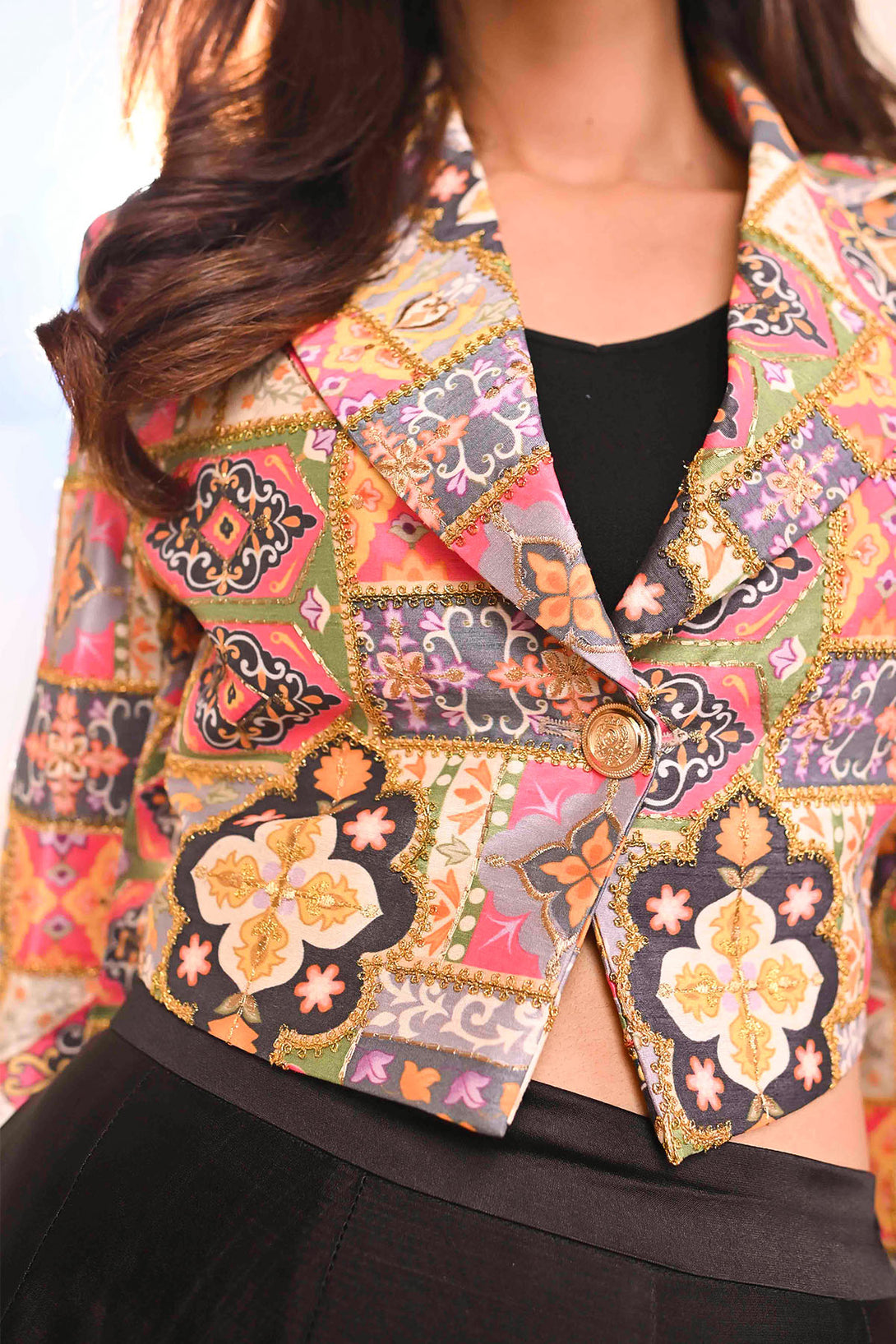 Features a 100% Indian patterned cotton cropped jacket – effortlessly chic and versatile