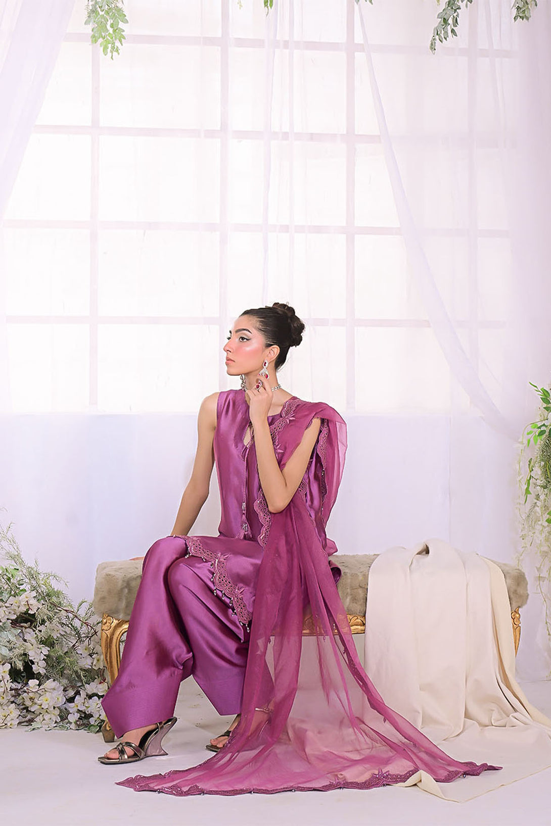 Saffira – Katan Silk Short Shirt Set with Farshi Shalwar