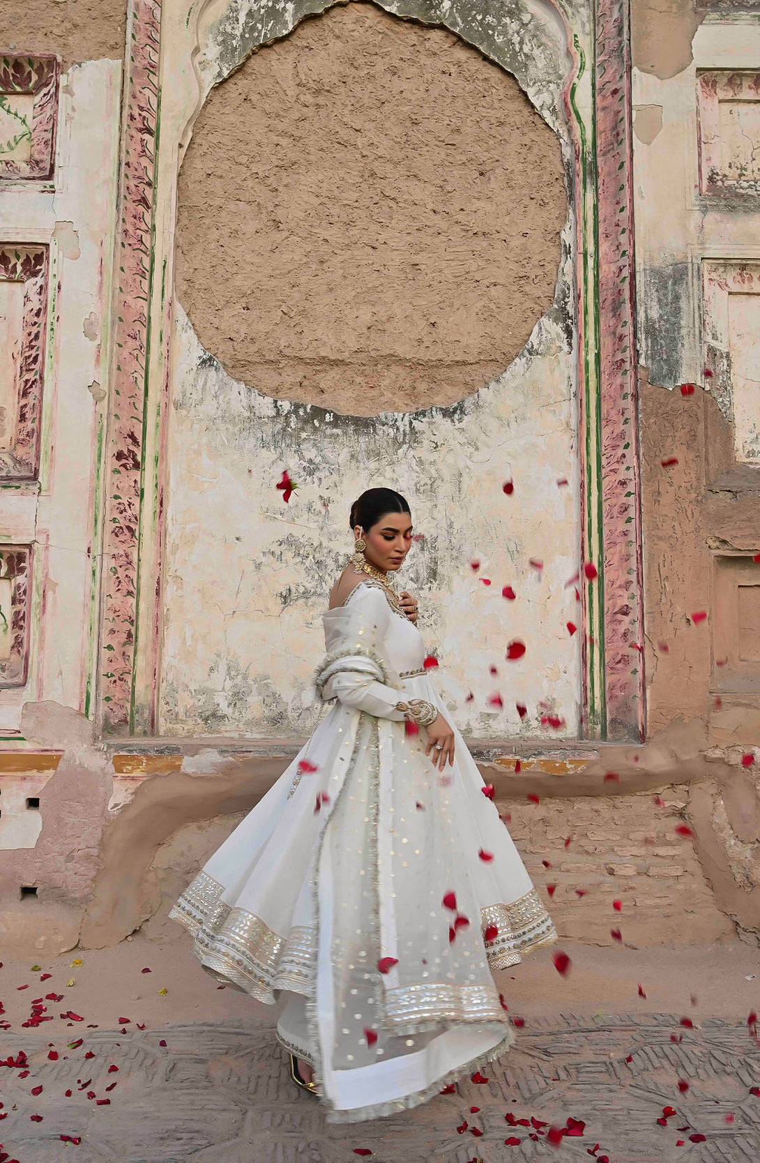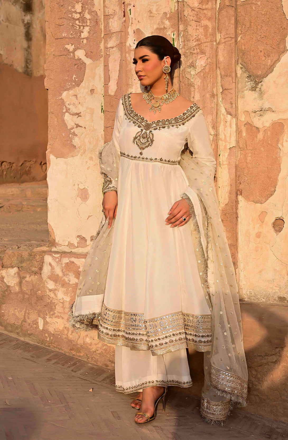 Raw Silk - Organza Dupatta - Sufiyana is our timeless piece which is suitable for every occasion. Beautifully handcrafted work, peackcocks details.