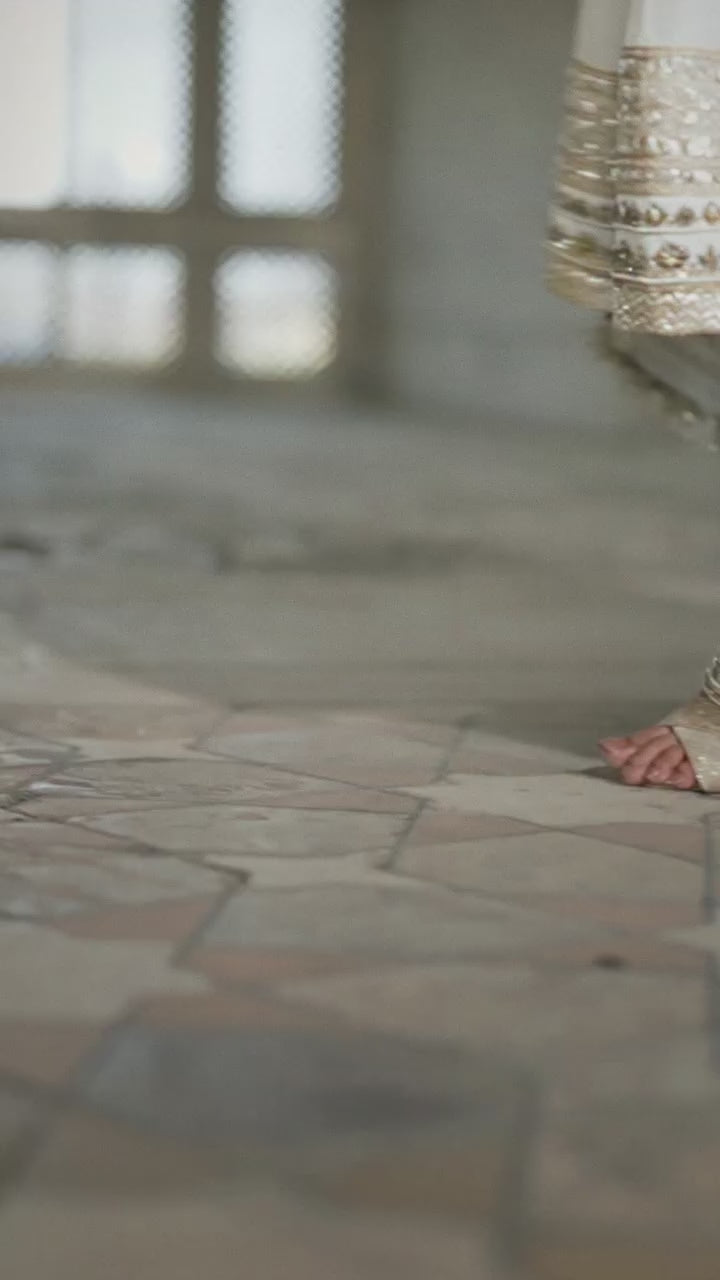 Sufiyana – a timeless raw silk ensemble paired with an organza dupatta, beautifully handcrafted with intricate detailing and elegant peacock motifs. Perfect for every occasion, this piece embodies grace and traditional artistry.