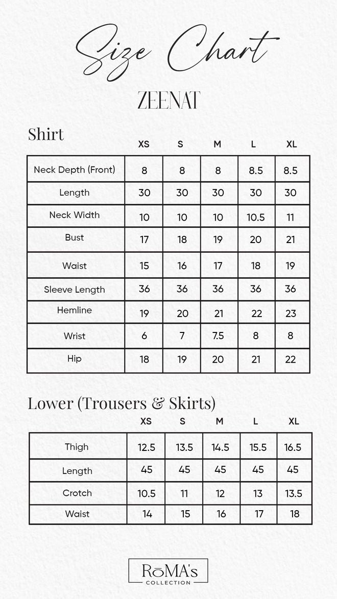 Zeenat – a graceful ensemble crafted from jamawar, velvet, and organza, blending timeless tradition with intricate craftsmanship. The Banarasi short shirt features extra-long sleeves, a handcrafted neckline, and detailed borders, paired with a flared sharara for an elegant silhouette. It is styled with a delicate organza dupatta and a rich maroon velvet shawl with Banarasi inner lining. The outfit is hand-embellished with kora, gotta, nakshi, stones, pearls, and kiram detailing, and completed with a matching potli bag for a heritage-inspired look.