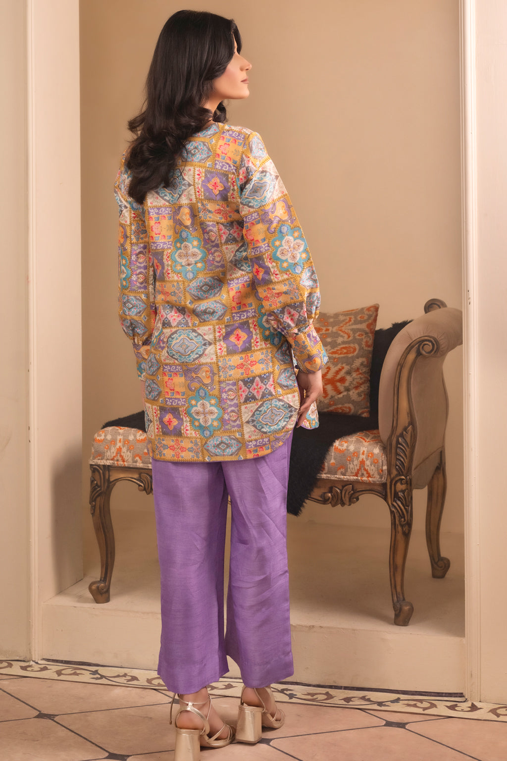 A cotton shirt with bold Indian patterns, designed for casual chic vibes